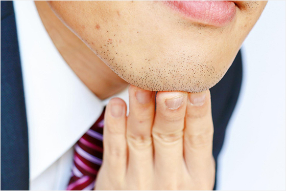 顎はヒゲの生える部位です。個人差はありますが、濃くて太い毛が顎からもみあげ付近にかけて生えることもあります。顎に生える毛は自ら処理できますが、キレイにしても数日後にはまた濃い毛が生えてきてしまいます。処理に困っている方も多い顎のムダ毛ですが、脱毛を行うことで徐々に抜けていき、日々気にしなくてもよい状態になります。