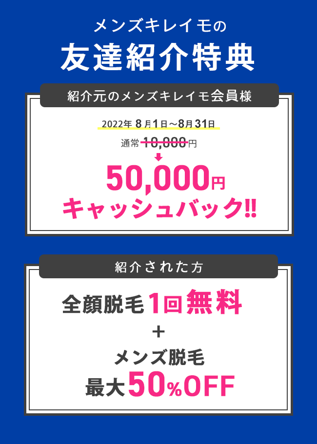 Warning: Undefined array key "author" in /home/totop/nt-dev.work/public_html/menskireimo/wp-content/themes/mens-kireimo/functions.php on line 292 友達紹介 | 男のヒゲ脱毛・全身脱毛ならメンズキレイモ【公式】 Warning: Undefined variable $tag_head in /home/totop/nt-dev.work/public_html/menskireimo/wp-content/themes/mens-kireimo/header.php on line 16