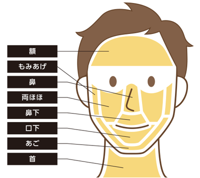 首から額まで(目元と眉毛除く)顔全体的まとめて脱毛できるプランです。