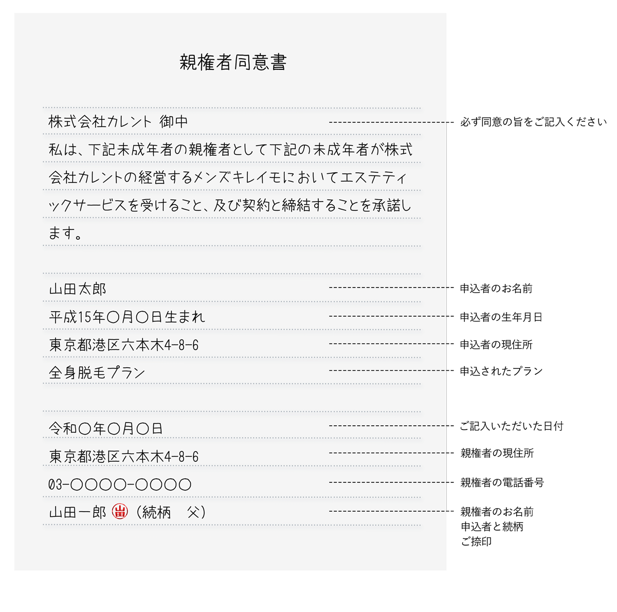 保護者の方の同意を確認するために「親権者同意書」にご記入お願いします。