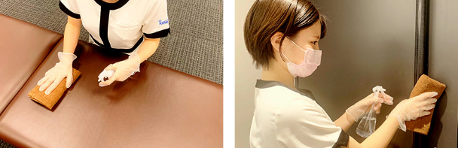 ※次亜塩素酸水を含む消毒液の空間への散布は"新型コロナウイルスに対する代替消毒方法の有効性評価に関する検討委員会事務局"の見解に基づき使用を控えさせていただいております